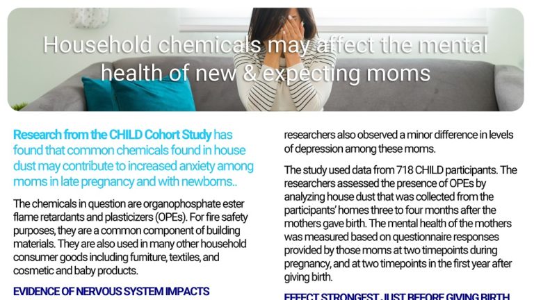 Research from the CHILD Cohort Study has found that common chemicals found in house dust may contribute to increased anxiety among moms in late pregnancy and with newborns.
