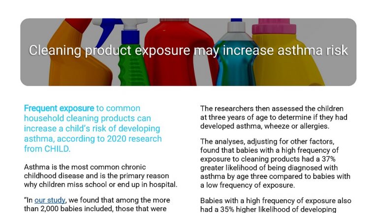 Frequent exposure to common household cleaning products can increase a child’s risk of developing asthma, according to 2020 research from CHILD.