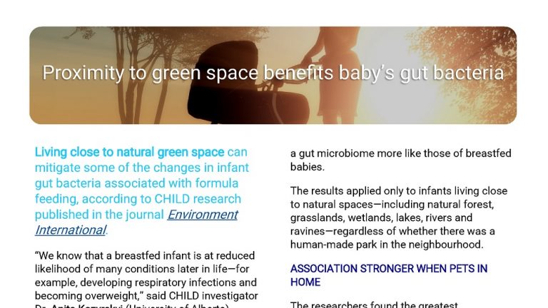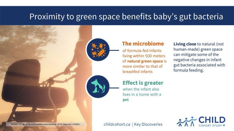 Living close to natural green space can mitigate some of the changes in infant gut bacteria associated with formula feeding, according to CHILD research published in the journal Environment International.