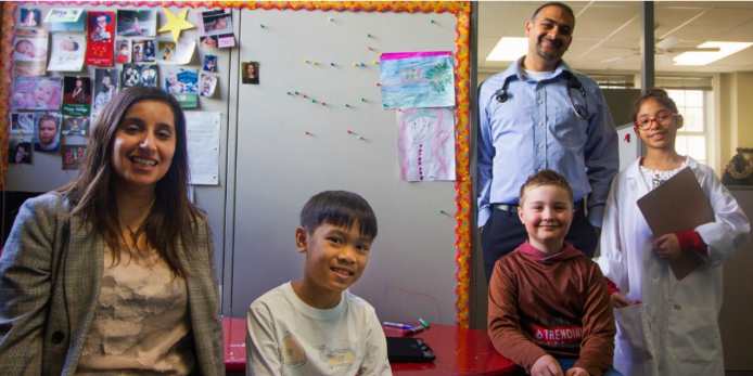 Dr. Sukhpreet Tamana (L) and Dr. Piush Mandhane (back) with CHILD participants in Edmonton, AB